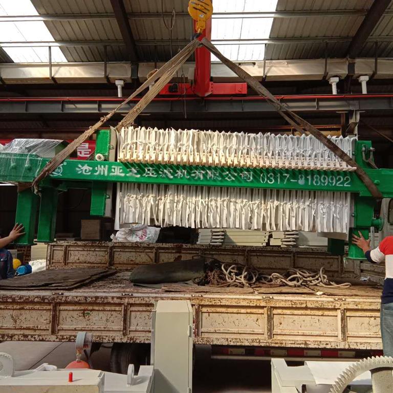 機械壓濾機的壓縮部件由電機(配有好的過載保護器)減速器、齒輪、螺桿和推力軸承組成。壓緊時,電機轉動,驅動減速器和齒輪,旋轉螺桿和推力軸承,推動壓緊板壓緊濾板和濾框。當壓力越來越大時,達到保護器設定的壓力值,即達到zui壓力,電機切斷電源,停止旋轉。由于螺桿具有可靠的自鎖螺旋角,可以可靠地確保工作過程中的壓緊狀態。退回時,電機反轉,當壓板上的壓塊觸摸到行程開關時,退回停止。機械壓濾機使用方便,降低了維護和使用液壓油的成本。